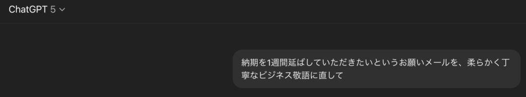 1. メール文章の下書き・添削「納期延長のお願いメールを、やわらかく丁寧な文にして」ビジネス敬語や表現の迷いを即解決