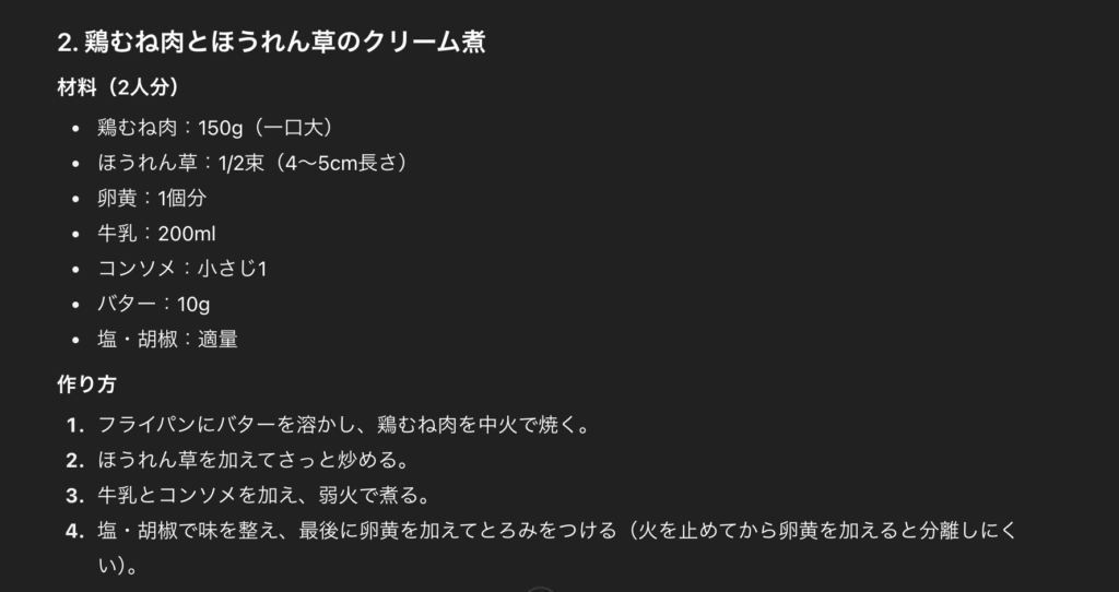 2. 料理レシピ提案「鶏むね肉とほうれん草で作れる晩ごはんを3つ」献立に悩む時間をゼロに