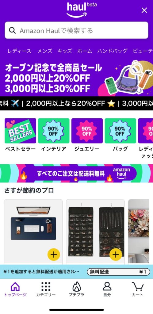 Amazon Haulは、Amazonショッピングアプリ上からのみアクセスできる、スマホアプリ専用のサービスです。パソコンのWebページからは購入できません