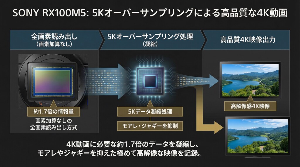 5Kオーバーサンプリングによる高品質な4K動画